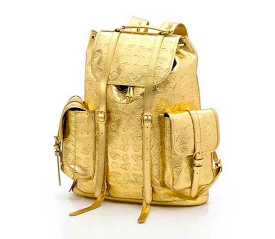 Sırt çantaları eskiden olduğu gibi bugün de revaçta. Bu altın sırt çantası 5.000 liralık fiyatıyla göz dolduruyor.