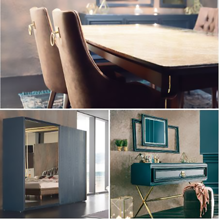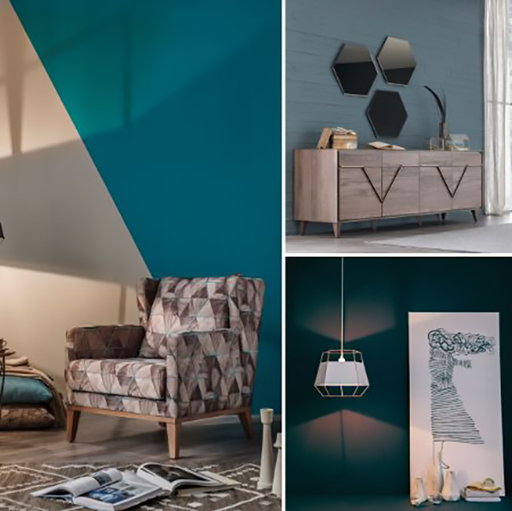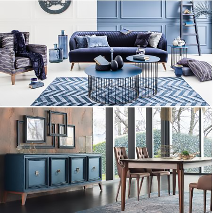 Koyu mavi tercihi, mekanlarda mistik bir etki yaratıyor. Mavi renk huzurun ve dinginliğin simgesi olduğu için mekanlarda ferahlamayı da sağlıyor.