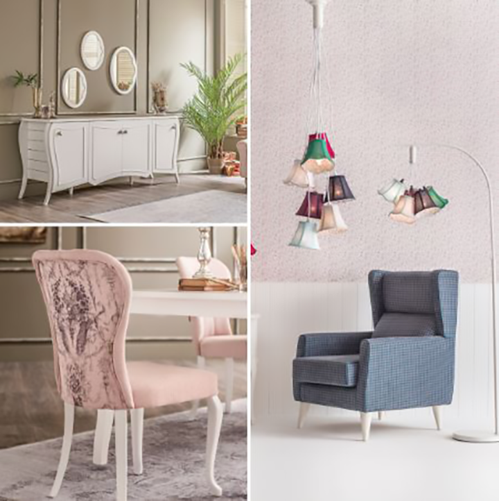 Modern ile geleneksel motifleri bir araya getiren vintage tarz, mobilyalardan aksesuarlara ve hatta halılara kadar kullanılıyor. Çiçekli dokular, süslemeler ve pastel tonların dikkat çektiği vintage tasarımlar modernizme klasik ve zamansız bir yorum katıyor.