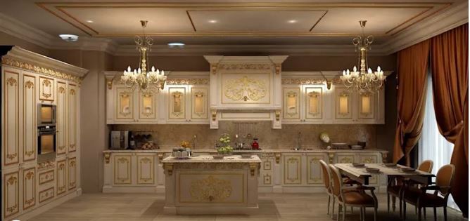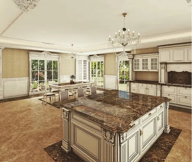 Asortie Mobilya Dekorasyon tarafından dizayn edilen örnekteki altın işlemeli mutfak dolapları evi ne kadar da seçkin göstermiş. Yaşam alanına hem fonksiyonel hem de şık bir dokunuş katan bu tasarımla klasik bir mutfağın bir anda saray mutfağına dönüşebileceği görülüyor. Ayrıca, mutfak adasının da oldukça fonksiyonel durduğu rahatlıkla anlaşılıyor.