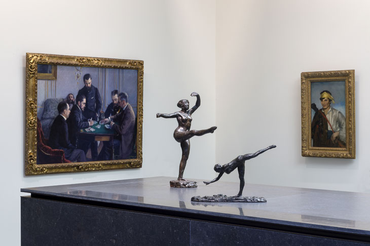 Müze özellikle eski çağlara; Orta Çağ, Rönesans ve Ortadoğu’ya yoğunlaşıyor. Dünyada ünlü birçok sanatçının eserleri Louvre Abu Dhabi’de sergilenecek. Özellikle Picasso, Da Vinci, Van Gogh ve Gaugin’e yer veriliyor. Toplam 620 eserin yaklaşık 250 kadarı Abu Dhabi’nin kendi tarihine ait. Ziyaretçileri müze girişinde altın ölüm maskesi, yazı aletleri ve birçok figürün yer aldığı koleksiyonlar karşılıyor.