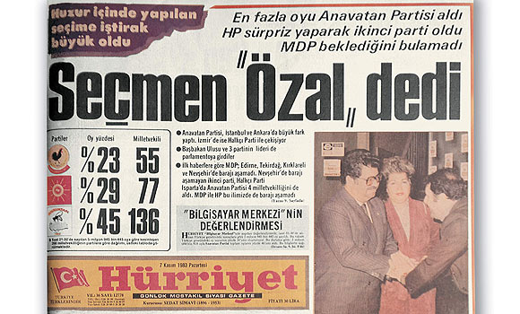 Yeni Anayasa seçimler, serbest, eşit, gizli, tek dereceli, genel oy, açık sayım ve denetim altında, beş yılda bir yapılmasını hükme bağladı. Ayrıca 10 Haziran 1983’de kabul edilen 2839 sayılı Milletvekili Seçimi Kanunu’na göre 1969, 1973 ve 1977 seçimlerinde uygulanan barajsız d’Hondt seçim sistemi kaldırılmış yerine ülke barajlı (%10) ve seçim çevresi barajlı nispi temsil (d’Hondt) seçim sistemi getirildi. 83 seçimlerini Turgut Özal kazandı.