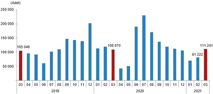 Tüik tarafından açıklanan Mart ayı verilerine göre Türkiye genelinde bir önceki yılın aynı ayına göre satışlar %2,4 artarak 111.241 oldu. Konut satışlarında İstanbul 22.007 konut satışı ve %19,8 ile en yüksek paya sahip olurken, İstanbul’u 11.003 konut satışı ve %9,9 pay ile Ankara, 6.636 konut satışı ve %6,0 pay ile İzmir izledi.