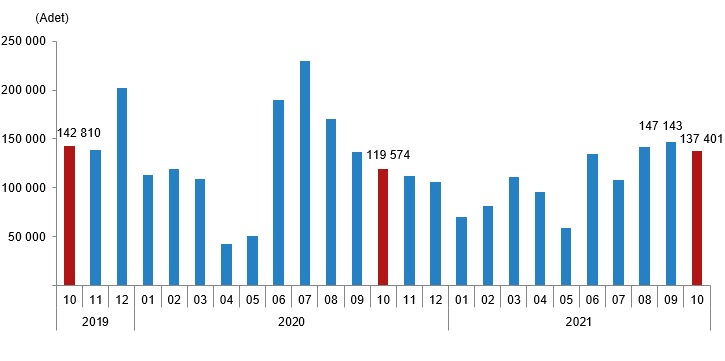 2021 yılındaki genel satış durumuna da bakacak olursak; Ocak-Ekim döneminde bir önceki yılın aynı dönemine göre %15,2 azalışla 1 milyon 86 bin 539 konut satışı gerçekleşmiş. Kasım ve Aralık ayı için geçmiş yılların ortalamasına bakacak olursak, bu yıl konut satışları 1,5 milyonu geçemeyecek gibi görünüyor.