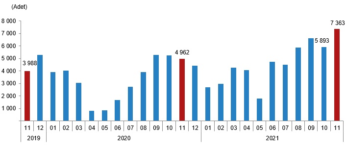 Yabancılara yapılan konut satışları Kasım ayında bir önceki yılın aynı ayına göre %48,4 artarak 7 bin 363 oldu. Toplam konut satışları içinde yabancılara yapılan konut satışının payı %4,1 oldu. Yabancılara yapılan konut satışlarında ilk sırayı 2 bin 922 konut satışı ile İstanbul aldı. İstanbul’u sırasıyla bin 917 konut satışı ile Antalya, 428 konut satışı ile Ankara izledi. Yabancılara yapılan konut satışları Ocak-Kasım döneminde ise bir önceki yılın aynı dönemine göre %39,4 artarak 50 bin 735 oldu.